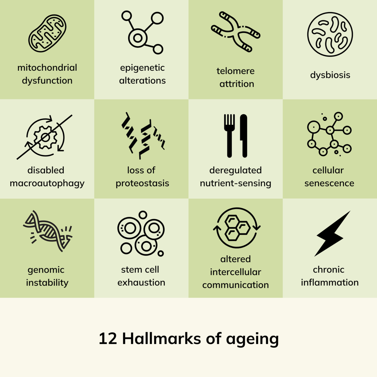Addressing these hallmarks collectively rather than in isolation could lead to more effective therapies. Examples include senolytics (removing senescent cells), microbiome modulation, and autophagy enhancers.