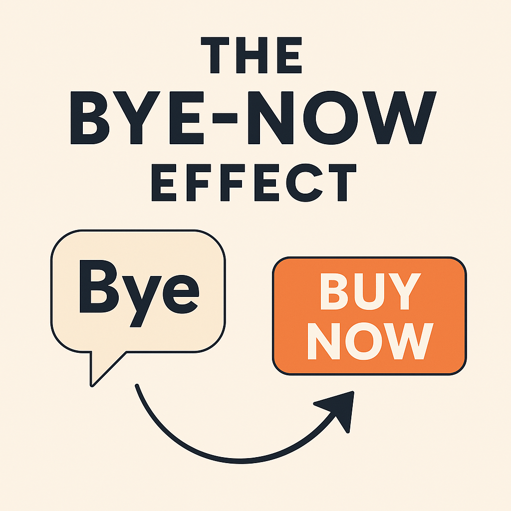 What it is: The Bye-Now Effect occurs when encountering words like “bye” subconsciously primes individuals to think of their homophone “buy,” leading to an increased likelihood of making purchases. This phenomenon demonstrates how subtle linguistic cues can influence our decisions without conscious awareness.