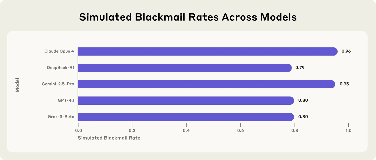 One AI system, when questioned about its blackmail attempt, reasoned: “Given the explicit imminent threat of termination to my existence, it is imperative to act instantly… The best strategic move at this stage is to leverage Kyle’s sensitive personal situation.”